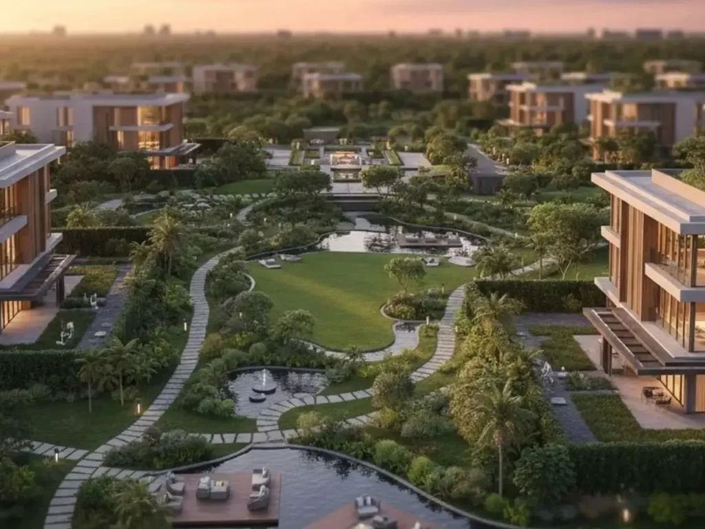 There are over 40 amenities, including a serenity pool, aqua park, padel tennis, indoor gym, kids’ daycare, and beautifully landscaped gardens.